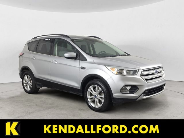 Ingot Silver 2018 Ford Escape SE 4WD 6-Speed Automatic EcoBoost 2.0L I4 GTDi DOHC Turbocharged VCT Clean CARFAX. 4WD, 3.51 Axle Ratio, 4-Wheel Disc Brakes, 6 Speakers, ABS brakes, Air Conditioning, Alloy wheels, AM/FM radio: SiriusXM, Automatic temperature control, Brake assist, Bumpers: body-color, CD player, Compass, Delay-off headlights, Driver door bin, Driver vanity mirror, Dual front impact airbags, Dual front side impact airbags, Electronic Stability Control, Emergency communication system: 911 Assist, Equipment Group 200A, Exterior Parking Camera Rear, Four wheel independent suspension, Front anti-roll bar, Front Bucket Seats, Front Center Armrest, Front dual zone A/C, Front fog lights, Front License Plate Bracket, Front reading lights, Fully automatic headlights, Heated front seats, Heated Unique Cloth Front Bucket Seats, Illuminated entry, Knee airbag, Low tire pressure warning, Occupant sensing airbag, Outside temperature display, Overhead airbag, Overhead console, Panic alarm, Panoramic Vista Roof, Passenger door bin, Passenger vanity mirror, Power door mirrors, Power driver seat, Power steering, Power windows, Radio data system, Radio: AM/FM Stereo w/Single-CD/MP3 Player, Rear anti-roll bar, Rear seat center armrest, Rear window defroster, Rear window wiper, Remote keyless entry, Roof rack: rails only, Security system, Speed control, Speed-sensing steering, Split folding rear seat, Steering wheel mounted audio controls, SYNC Communications & Entertainment System, Tachometer, Telescoping steering wheel, Tilt steering wheel, Traction control, Trip computer, Variably intermittent wipers, Wheels: 17" Sparkle Silver-Painted Aluminum, 4WD.