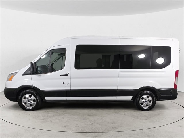Oxford White 2019 Ford Transit-350 XLT RWD 6-Speed Automatic with Overdrive 3.7L V6 Ti-VCT 24V CARFAX One-Owner. 15-Passenger Seats, 3.73 Axle Ratio, 3rd row seats: split-bench, 4-Wheel Disc Brakes, 4th-Row Bench Seat, ABS brakes, Air Conditioning, AM/FM radio, Brake assist, Charcoal Black Cloth Dual Bucket Seats, Cloth Front Bucket Seats, Cruise Control w/Message Center, Driver door bin, Driver's Seat Mounted Armrest, Dual front impact airbags, Dual front side impact airbags, Electronic Stability Control, Exterior Parking Camera Rear, Frame Mounted Hitch Receiver, Front anti-roll bar, Front Bucket Seats, Front License Plate Bracket, Front reading lights, Front wheel independent suspension, Heavy-Duty Alternator, Heavy-Duty Trailer Tow Package, Illuminated entry, Low tire pressure warning, Occupant sensing airbag, Overhead airbag, Overhead console, Panic alarm, Passenger door bin, Pewter Cloth Dual Bucket Seats, Power door mirrors, Power steering, Power windows, Privacy Glass, Radio: AM/FM Single-CD Stereo, Radio: AM/FM Stereo w/CD/HD/SiriusXM/SYNC, Rear air conditioning, Rear-Window Defroster, Remote keyless entry, Remote Keyless-Entry Keypad, Reverse Sensing System, Running Board, Tachometer, Telescoping steering wheel, Tilt steering wheel, Tow/Haul Mode w/Trailering Wiring Provisions, Traction control, Variably intermittent wipers, Vinyl Sun Visors, Wheels: 16" Easy to Clean Styled Aluminum, Wheels: 16" Steel w/Full Silver Cover.