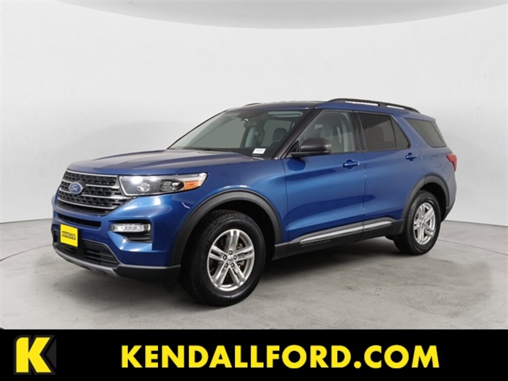 Blue 2022 Ford Explorer XLT 4WD 10-Speed Automatic 2.3L EcoBoost I-4 4WD, 1st Row Heated Seats, 2nd Row 35/30/35 Bench w/E-Z Entry & Armrest, 3.58 Non-Limited-Slip Rear Axle Ratio, 3rd row seats: bench, 4-Wheel Disc Brakes, 6 Speakers, ABS brakes, Acoustic-Laminated Front Side Windows, ActiveX Captain's Chairs, Air Conditioning, Alloy wheels, AM/FM radio: SiriusXM, AM/FM Stereo, Auto High-beam Headlights, Auto Start-Stop Removal, Automatic temperature control, Brake assist, Bumpers: body-color, Class IV Trailer Tow Package, Compass, Delay-off headlights, Driver door bin, Driver vanity mirror, Dual front impact airbags, Dual front side impact airbags, Electronic Stability Control, Emergency communication system: SYNC 3 911 Assist, Equipment Group 202A, Evasive Steering Assist, Exterior Parking Camera Rear, Ford Co-Pilot360 Assist+, FordPass Connect, Four wheel independent suspension, Front anti-roll bar, Front Bucket Seats, Front Center Armrest, Front dual zone A/C, Front License Plate Bracket, Front reading lights, Fully automatic headlights, Heated door mirrors, Heated front seats, Heated Steering Wheel, Illuminated entry, Intelligent Adaptive Cruise Control, Knee airbag, Leather steering wheel, LED Fog Lamps, Low tire pressure warning, Occupant sensing airbag, Outside temperature display, Overhead airbag, Overhead console, Panic alarm, Passenger door bin, Passenger vanity mirror, Power door mirrors, Power driver seat, Power Liftgate, Power passenger seat, Power steering, Power windows, Rear air conditioning, Rear anti-roll bar, Rear Auxiliary Controls Credit, Rear reading lights, Rear window defroster, Rear window wiper, Remote keyless entry, Remote Start System, Roof rack: rails only, SecuriCode Keyless Entry Keypad, Security system, Speed control, Speed Sign Recognition, Speed-sensing steering, Speed-Sensitive Wipers, Split folding rear seat, Spoiler, Steering wheel mounted audio controls, SYNC 3 Communications & Entertainment System, SYNC 3/Apple CarPlay/Android Auto, Tachometer, Telescoping steering wheel, Tilt steering wheel, Traction control, Trip computer, Unique Cloth Captain's Chairs, Variably intermittent wipers, Voice-Activated Touchscreen Navigation System, Wheels: 18" 5-Spoke Silver-Painted Aluminum, 4WD. Priced below KBB Fair Purchase Price!
