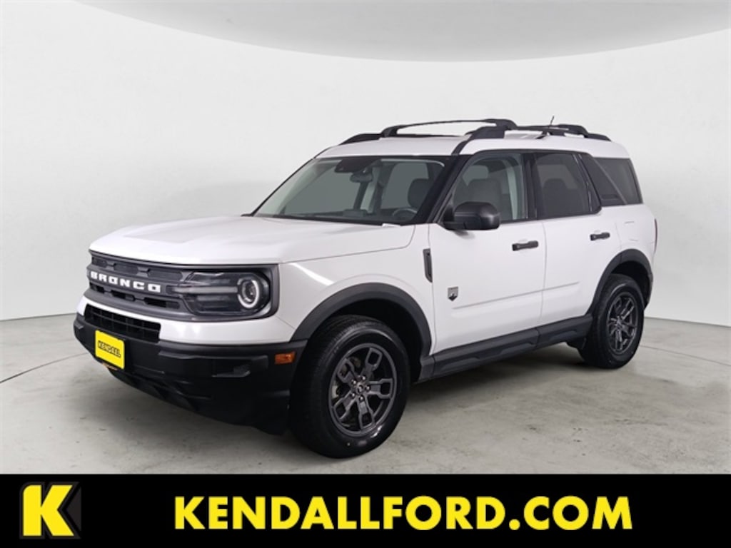 Oxford White 2023 Ford Bronco Sport Big Bend 4WD 8-Speed Automatic 1.5L EcoBoost CARFAX One-Owner. 3.80 Axle Ratio, 4-Wheel Disc Brakes, 4G LTE Wi-Fi Hotspot Credit, 6 Speakers, ABS brakes, Air Conditioning, Alloy wheels, AM/FM radio: SiriusXM, AM/FM Stereo, Auto High-beam Headlights, Automatic temperature control, Brake assist, Cargo Mat, Compass, Delay-off headlights, Driver door bin, Driver vanity mirror, Dual front impact airbags, Dual front side impact airbags, Electronic Stability Control, Emergency communication system: SYNC 3 911 Assist, Equipment Group 200A, Four wheel independent suspension, Front anti-roll bar, Front Bucket Seats, Front Center Armrest, Front License Plate Bracket, Front reading lights, Fully automatic headlights, Heated door mirrors, Illuminated entry, Knee airbag, Low tire pressure warning, Occupant sensing airbag, Outside temperature display, Overhead airbag, Overhead console, Panic alarm, Passenger door bin, Passenger vanity mirror, Power door mirrors, Power steering, Power windows, Radio data system, Rear anti-roll bar, Rear reading lights, Rear seat center armrest, Rear window defroster, Rear window wiper, Remote keyless entry, Security system, SiriusXM, Speed control, Speed-sensing steering, Speed-Sensitive Wipers, Split folding rear seat, Steering wheel mounted audio controls, SYNC 3 Communications & Entertainment System, SYNC 3/Apple CarPlay/Android Auto, Tachometer, Telescoping steering wheel, Tilt steering wheel, Traction control, Trip computer, Unique Cloth Front Bucket Seats, Variably intermittent wipers, Wheels: 17" Carbonized Gray-Painted Aluminum.