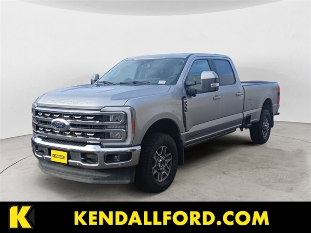 Iconic Silver Metallic 2023 Ford F-350SD Lariat 4WD 10-Speed Automatic Power Stroke 6.7L V8 DI 32V OHV Turbodiesel CARFAX One-Owner. Clean CARFAX. 4WD, 190 Amp Alternator, 4-Way Adjustable Headrests, 4-Wheel Disc Brakes, 410 Amp Dual Alternators, 8 Speakers, ABS brakes, Adjustable pedals, Air Conditioning, All-Weather Floor Mats, Alloy wheels, AM/FM radio: SiriusXM with 360L, Auto High-beam Headlights, Auto tilt-away steering wheel, Auto-dimming Rear-View mirror, Automatic High Beam, Automatic temperature control, BLIS w/Cross-Traffic Alert, Brake assist, Bumpers: chrome, Compass, Delay-off headlights, Driver door bin, Driver vanity mirror, Dual 68 AH/65 AGM Batteries, Dual front impact airbags, Dual front side impact airbags, Electronic Stability Control, Emergency communication system: SYNC 4 911 Assist, Engine Block Heater, Exterior Parking Camera Rear, Flow-Through Console, Front anti-roll bar, Front Bucket Seats, Front Center Armrest, Front dual zone A/C, Front fog lights, Front Leather-Trimmed 40/Console/40 Seats, Front reading lights, Front Sensing System, Front Splash Guards/Mud Flaps (Pre-Installed), Fully automatic headlights, FX4 Off-Road Package, Garage door transmitter, Head-Up Display, Heated door mirrors, Heated front seats, Heated rear seats, Heated steering wheel, Hill Descent Control, Illuminated entry, Intelligent Adaptive Cruise Control w/Stop-and-Go, Lane Keeping Assist, Lane-Keeping System, Lariat Ultimate Package, Leather steering wheel, Low tire pressure warning, Memory seat, Navigation system: Connected Navigation, Off-Road Specifically Tuned Shock Absorbers, Order Code 618A, Outside temperature display, Overhead airbag, Overhead console, Panic alarm, Passenger door bin, Passenger vanity mirror, Pedal memory, Post-Collision Braking, Power door mirrors, Power driver seat, Power passenger seat, Power steering, Power windows, Power-Deployable Running Boards, Pre-Collision Assist, Pro Trailer Backup Assist, Pro Trailer Hitch Assist, Radio: B&O Sound System by Bang & Olufsen, Radio: B&O Unleashed Sound System by Bang & Olufsen, Rain sensing wipers, Rapid-Heat Supplemental Cab Heater, Rear reading lights, Rear seat center armrest, Rear Splash Guards/Mud Flaps (Pre-Installed), Rear step bumper, Rear window defroster, Remote keyless entry, Security system, SiriusXM Radio w/360L, Speed control, Split folding rear seat, Steering wheel memory, Steering wheel mounted audio controls, SYNC 4 w/Enhanced Voice Recognition, Tachometer, Tailgate Step & Handle, Telescoping steering wheel, Tilt steering wheel, Tow Technology Package, Traction control, Trip computer, Turn signal indicator mirrors, Unique FX4 Off-Road Box Decal, Upfitter Switches (6), Variably intermittent wipers, Ventilated front seats, Wheels: 18" Bright Machined & Carbonized Gray Alum, Wireless Charging Pad, 4WD.