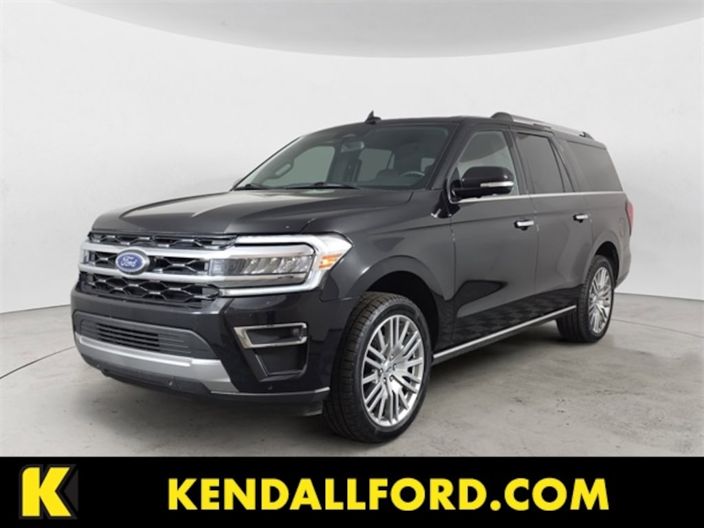 Black 2024 Ford Expedition Max Limited 4WD 10-Speed Automatic EcoBoost 3.5L V6 GTDi DOHC 24V Twin Turbocharged Clean CARFAX. 12 Speakers, 2nd Row Power-Folding 40/20/40 Leather Bench Seat, 360-Degree Camera w/Split View, 3rd row seats: split-bench, 4-Wheel Disc Brakes, ABS brakes, Adjustable pedals, Air Conditioning, Alloy wheels, AM/FM radio: SiriusXM with 360L, Auto High-beam Headlights, Auto-dimming door mirrors, Auto-dimming Rear-View mirror, Automatic temperature control, Brake assist, Bumpers: body-color, Compass, Connected Navigation, Delay-off headlights, Driver door bin, Driver vanity mirror, Dual front impact airbags, Dual front side impact airbags, Ebony Black Mesh Grille, Electronic Stability Control, Emergency communication system: SYNC 4 911 Assist, Engine Block Heater, Equipment Group 302A High Package, Exterior Parking Camera Rear, Four wheel independent suspension, Front anti-roll bar, Front Bucket Seats, Front Center Armrest, Front dual zone A/C, Front fog lights, Front reading lights, Fully automatic headlights, Garage door transmitter, Heated & Ventilated Leather Front Captain's Chairs, Heated door mirrors, Heated front seats, Heated rear seats, Heated steering wheel, Heavy-Duty Independent Suspension, Illuminated entry, Leather steering wheel, Low tire pressure warning, Magnetic-Painted Power Deployable Running Boards, Memory seat, Navigation system: Connected Navigation, Occupant sensing airbag, Outside temperature display, Overhead airbag, Overhead console, Panic alarm, Passenger door bin, Passenger vanity mirror, Pedal memory, Power door mirrors, Power driver seat, Power Liftgate, Power moonroof, Power passenger seat, Power steering, Power windows, Power-Folding Sideview Mirrors w/Autofold, Radio data system, Radio: B&O Sound System by Bang & Olufsen, Rain sensing wipers, Rear air conditioning, Rear anti-roll bar, Rear reading lights, Rear window defroster, Rear window wiper, Reclining 3rd row seat, Remote keyless entry, Reverse Brake Assist, Security system, SiriusXM w/360L, Speed control, Speed-sensing steering, Speed-Sensitive Wipers, Split folding rear seat, Spoiler, Steering wheel memory, Steering wheel mounted audio controls, SYNC 4 w/Enhanced Voice Recognition, Tachometer, Telescoping steering wheel, Tilt steering wheel, Traction control, Trip computer, Turn signal indicator mirrors, Variably intermittent wipers, Ventilated front seats, Voltmeter, Wheels: 20" Bright Machined Aluminum, Wheels: 22" 12-Spoke Polished Aluminum.