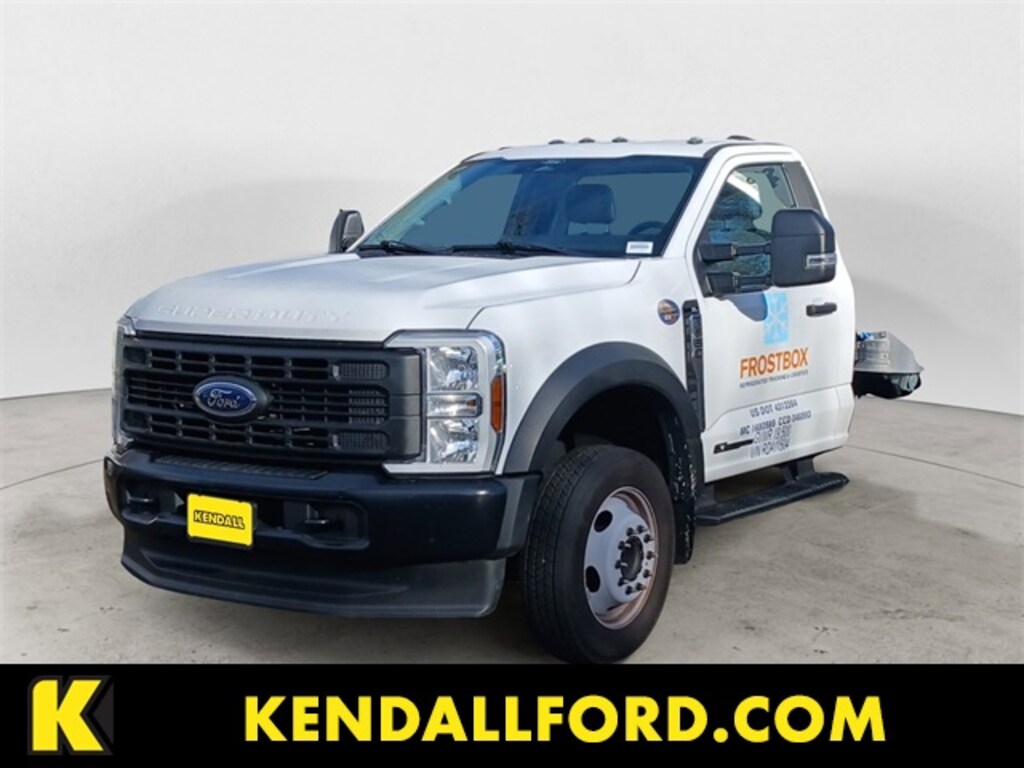Oxford White 2024 Ford F-550SD XL DRW RWD 10-Speed Automatic Power Stroke 6.7L V8 DI 32V OHV Turbodiesel CARFAX One-Owner. Clean CARFAX. 4 Speakers, 4-Wheel Disc Brakes, ABS brakes, Air Conditioning, AM/FM radio, AM/FM Stereo w/MP3 Player, Brake assist, Compass, Delay-off headlights, Dual 68 AH/65 AGM Battery, Dual front impact airbags, Dual front side impact airbags, Dual rear wheels, Emergency communication system: SYNC 4 911 Assist, Front anti-roll bar, Front Center Armrest w/Storage, Front License Plate Bracket, Front reading lights, Fully automatic headlights, GVWR: 18,000 lbs Payload Package, GVWR: 19,500 lb Payload Plus Upgrade Package, HD Vinyl 40/20/40 Split Bench Seat, Heated door mirrors, High Capacity Trailer Tow Package, Illuminated entry, Order Code 660A, Outside temperature display, Overhead airbag, Overhead console, Panic alarm, Passenger cancellable airbag, Passenger vanity mirror, Platform Running Boards, Power door mirrors, Power steering, Power windows, Rear anti-roll bar, Rear View Camera & Prep Kit, Remote keyless entry, Speed control, Steering wheel mounted audio controls, SYNC 4 Communications & Entertainment System, Tachometer, Telescoping steering wheel, Tilt steering wheel, Traction control, Trip computer, Turn signal indicator mirrors, Variably intermittent wipers, Wheels: 19.5" x 6" Argent Painted Steel.