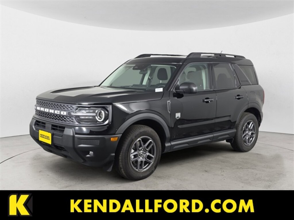 Shadow Black 2025 Ford Bronco Sport Big Bend 4WD 8-Speed Automatic 1.5L EcoBoost Clean CARFAX. 4-Wheel Disc Brakes, 6 Speakers, ABS brakes, Air Conditioning, Alloy wheels, AM/FM radio: SiriusXM, AM/FM Stereo, Auto High-beam Headlights, Automatic temperature control, Brake assist, Cloth w/Easy-to-Clean Front Bucket Seats, Compass, Convenience Package, Delay-off headlights, Driver door bin, Driver vanity mirror, Dual front impact airbags, Dual front side impact airbags, Electronic Stability Control, Emergency communication system: SYNC 4 911 Assist, Equipment Group 200A, Four wheel independent suspension, Front anti-roll bar, Front Bucket Seats, Front Center Armrest, Front Driver/Passenger Seat Back Map Pockets, Front License Plate Bracket, Front reading lights, Fully automatic headlights, Heated 8-Way Power Driver's Seat, Heated door mirrors, Illuminated entry, Knee airbag, LED Fog Lamps, Low tire pressure warning, Occupant sensing airbag, Outside temperature display, Overhead airbag, Overhead console, Panic alarm, Passenger door bin, Passenger vanity mirror, Power door mirrors, Power steering, Power windows, Premium Wrapped Steering Wheel, Radio data system, Rear anti-roll bar, Rear Parking Sensors, Rear reading lights, Rear seat center armrest, Rear window defroster, Rear window wiper, Remote keyless entry, Security system, SiriusXM, Speed control, Speed-sensing steering, Speed-Sensitive Wipers, Split folding rear seat, Steering wheel mounted audio controls, SYNC 4 w/Enhanced Voice Recognition, Tachometer, Telescoping steering wheel, Tilt steering wheel, Traction control, Trip computer, Universal Garage Door Opener (UGDO), Variably intermittent wipers, Wheels: 17" Carbonized Gray-Painted Aluminum.