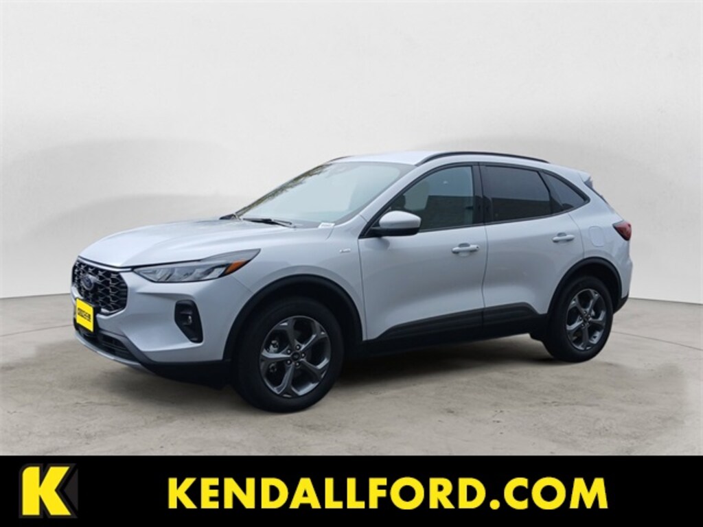 Silver Metallic 2025 Ford Escape ST-Line Select AWD 8-Speed Automatic EcoBoost 2.0L I4 GTDi DOHC Turbocharged VCT Clean CARFAX. AWD, 2.91 Axle Ratio, 4-Wheel Disc Brakes, 6 Speakers, ABS brakes, Adaptive Cruise Control w/Stop-and-Go, Air Conditioning, Alloy wheels, AM/FM radio: SiriusXM, AM/FM Stereo, Auto High-beam Headlights, Automatic temperature control, Brake assist, Bumpers: body-color, Compass, Connected Navigation, Delay-off headlights, Driver door bin, Driver vanity mirror, Dual front impact airbags, Dual front side impact airbags, Electronic Fuel Door Release, Electronic Stability Control, Emergency communication system: SYNC 4 911 Assist, Equipment Group 401A, Ford Co-Pilot360 Assist+, FordPass Connect, Four wheel independent suspension, Front & Rear Floor Liners w/Carpet Mats, Front anti-roll bar, Front Bucket Seats, Front Center Armrest, Front dual zone A/C, Front fog lights, Front License Plate Bracket, Front reading lights, Fully automatic headlights, Heated door mirrors, Heated front seats, Heated steering wheel, Heated Vinyl/Cloth Front Sport Contour Bucket Seats, Illuminated entry, Intersection Assist, Knee airbag, Low tire pressure warning, Neutral Towing Capability, Occupant sensing airbag, Outside temperature display, Overhead airbag, Overhead console, Panic alarm, Passenger door bin, Passenger vanity mirror, Pedestrian Alert Sounder, Power door mirrors, Power driver seat, Power Liftgate, Power steering, Power windows, Predictive Speed Assist, Radio data system, Rear anti-roll bar, Rear Parking Sensor, Rear reading lights, Rear seat center armrest, Rear window defroster, Rear window wiper, Rear-View Camera, Remote keyless entry, Speed control, Speed-sensing steering, Speed-Sensitive Wipers, Split folding rear seat, Spoiler, Sport steering wheel, Steering wheel mounted audio controls, SYNC 4, SYNC 4 w/Enhanced Voice Recognition, Tachometer, Tech Pack #1, Telescoping steering wheel, Tilt steering wheel, Traction control, Trip computer, Variably intermittent wipers, Wheels: 18" Rock Metallic Painted Aluminum, AWD.