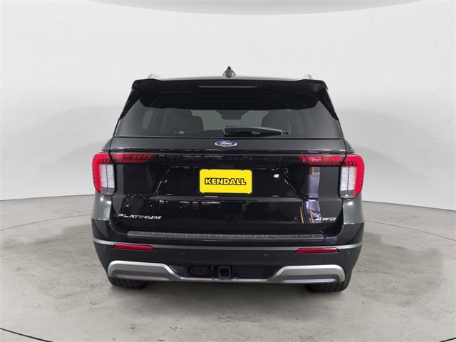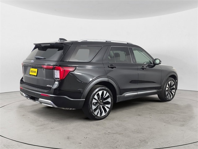 Black Metallic 2025 Ford Explorer Platinum 4WD 10-Speed Automatic 2.3L EcoBoost I-4 Clean CARFAX. 4WD, 14 Speakers, 3.58 Non-Limited Slip Rear Axle, 3rd row seats: bench, 4-Wheel Disc Brakes, ABS brakes, ActiveX Trimmed Sport Captain's Chairs, Air Conditioning, Alloy wheels, AM/FM radio: SiriusXM with 360L, Apple CarPlay/Android Auto, Auto High-beam Headlights, Auto-dimming door mirrors, Auto-dimming Rear-View mirror, Automatic temperature control, Brake assist, Bumpers: body-color, Compass, Delay-off headlights, Driver door bin, Driver vanity mirror, Dual front impact airbags, Dual front side impact airbags, Electronic Stability Control, Emergency communication system: 911 Assist, Equipment Group 600A Standard Package, Exterior Parking Camera Rear, Ford BlueCruise Equipped (1-Year Plan) (DISC), Four wheel independent suspension, Front anti-roll bar, Front Bucket Seats, Front Center Armrest, Front dual zone A/C, Front fog lights, Front License Plate Bracket, Front reading lights, Fully automatic headlights, Garage door transmitter, Heated door mirrors, Heated front seats, Heated rear seats, Heated steering wheel, Illuminated entry, Internet access capable: FordPass Connect 5G, Knee airbag, Leather Seating Surfaces Sport Captain Chairs, Leather steering wheel, Low tire pressure warning, Lux Leather Package, Memory seat, Navigation System, Occupant sensing airbag, Outside temperature display, Overhead airbag, Overhead console, Panic alarm, Passenger door bin, Passenger vanity mirror, Platinum Badges on Front Row Seats, Power door mirrors, Power driver seat, Power Liftgate, Power moonroof, Power passenger seat, Power steering, Power windows, Quilting & Stitching on Door Panels, Quilting & Stitching on Seats, Radio data system, Radio: B&O Sound System by Bang & Olufsen w/HD, Rain sensing wipers, Rear air conditioning, Rear anti-roll bar, Rear reading lights, Rear window defroster, Rear window wiper, Remote keyless entry, SecuriCode Keyless Entry Keypad, Security system, Speed control, Speed-sensing steering, Speed-Sensitive Wipers, Split folding rear seat, Spoiler, Steering wheel mounted audio controls, Tachometer, Telescoping steering wheel, Tilt steering wheel, Traction control, Trip computer, Turn signal indicator mirrors, Variably intermittent wipers, Ventilated front seats, Wheels: 20" Luster Nickel-Painted Aluminum, Wheels: 21" Bright Machined Alum w/Tarnish Dk Pkts, 4WD.