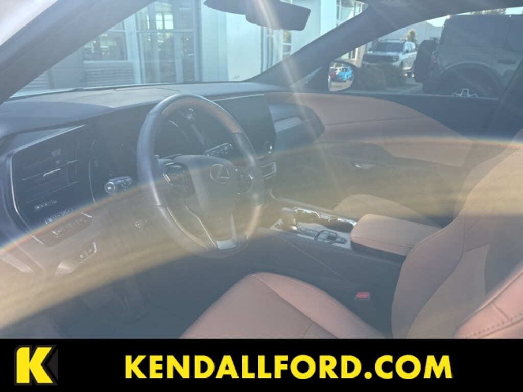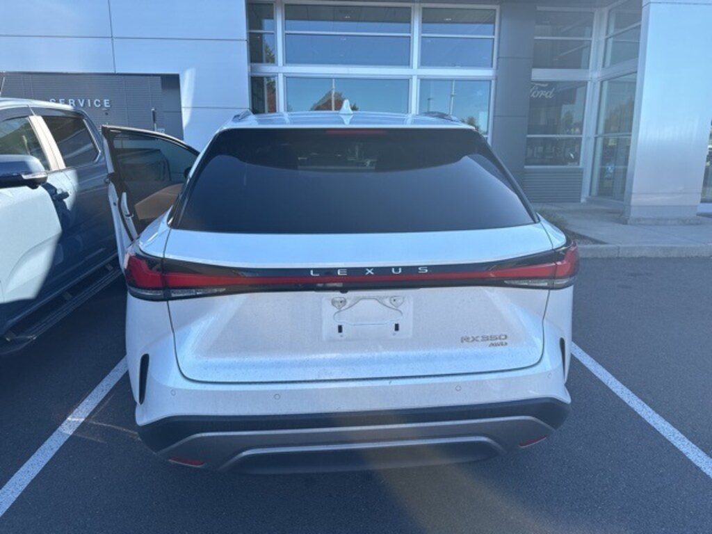 White 2023 Lexus RX 350 Premium AWD 8-Speed Automatic 2.4L I4 PDI Turbocharged DOHC 16V LEV3-SULEV30 275hp Clean CARFAX. AWD, Palomino W/Ash Bamboo Artificial Leather, 12 Speakers, 19" Wheels, 3.33 Axle Ratio, 4-Wheel Disc Brakes, 8-Way Power Driver & Front Passenger Seat Adjusters, ABS brakes, Air Conditioning, Alloy wheels, AM/FM radio: SiriusXM, Anti-whiplash front head restraints, Auto High-beam Headlights, Auto tilt-away steering wheel, Auto-dimming door mirrors, Auto-dimming Rear-View mirror, Automatic temperature control, BGM - Back Monitor, Brake assist, Bumpers: body-color, Cargo Net, Carpet Cargo Mat, Cold Area Package, Compass, Delay-off headlights, Digital Rearview Mirror, Driver door bin, Driver vanity mirror, Dual front impact airbags, Dual front side impact airbags, Electronic Stability Control, Emergency communication system: Safety Connect (10-year trial), Exterior Parking Camera Rear, Four wheel independent suspension, Front anti-roll bar, Front Bucket Seats, Front Center Armrest, Front dual zone A/C, Front fog lights, Front reading lights, Front Seat Air Conditioner, Fully automatic headlights, Garage door transmitter: HomeLink, Genuine wood console insert, Heated & Ventilated Front Bucket Seats, Heated door mirrors, Heated front seats, Heated Wood & Leather Steering Wheel w/Paddle, Illuminated entry, Leather Shift Knob, Low tire pressure warning, Memory seat, Navigation System, NuLuxe Seat Trim, Occupant sensing airbag, Outside temperature display, Overhead airbag, Overhead console, Panic alarm, Parking Support Alert/Brake, Passenger door bin, Passenger vanity mirror, Power door mirrors, Power driver seat, Power Liftgate, Power moonroof, Power passenger seat, Power Rear Door w/Kick Sensor, Power steering, Power windows, Premium Package, Radio data system, Radio: Lexus Interface w/14" HD Touchscreen Display, Radio: Lexus Interface w/9.8" HD Touchscreen Display, Rain sensing wipers, Rear air conditioning, Rear anti-roll bar, Rear reading lights, Rear seat center armrest, Rear side impact airbag, Rear window defroster, Rear window wiper, Remote keyless entry, Security system, Speed control, Speed-sensing steering, Split folding rear seat, Spoiler, Steering wheel memory, Steering wheel mounted audio controls, Tachometer, Telescoping steering wheel, Tilt & Slide Sunroof & Moonroof, Tilt steering wheel, Traction control, Traffic Jam Assist, Trip computer, Turn signal indicator mirrors, Variably intermittent wipers, Ventilated front seats, Wireless Apple CarPlay/Wireless Android Auto, Wireless Charger, AWD, Palomino W/Ash Bamboo Artificial Leather.