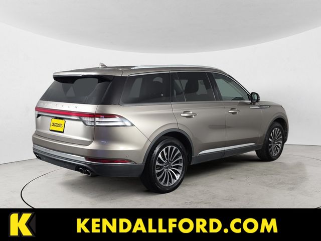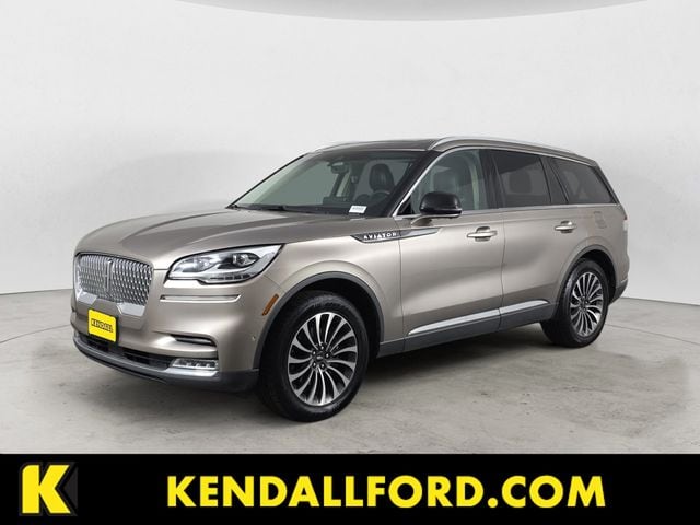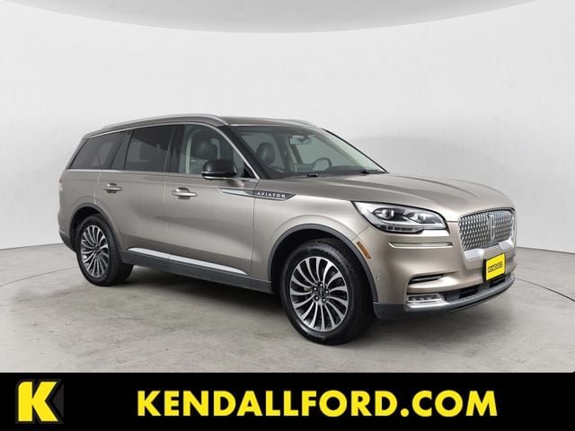 Mocha 2020 Lincoln Aviator Reserve AWD 10-Speed Automatic 3.0L V6 14 Speakers, 3.58 Axle Ratio, 3rd row seats: split-bench, 4-Wheel Disc Brakes, ABS brakes, Active Park Assist Plus, Adaptive Cruise Control w/Traffic Jam Assist, Adaptive Pixel LED Headlamps, Adaptive suspension, Air Conditioning, All-Weather Floor Liners, Alloy wheels, AM/FM radio: SiriusXM, Audio memory, Auto High-beam Headlights, Auto-dimming door mirrors, Auto-dimming Rear-View mirror, Automatic temperature control, Brake assist, Bumpers: body-color, Cargo Area Cover, Cargo Area Protector (Dealer Installed), Compass, Convenience Package, Delay-off headlights, Driver door bin, Driver vanity mirror, Dual front impact airbags, Dual front side impact airbags, Electronic Stability Control, Elements Package Plus, Emergency communication system: SYNC 3 911 Assist, Equipment Group 201A, Evasive Steering Assist, Four wheel independent suspension, Front anti-roll bar, Front Bucket Seats, Front Center Armrest, Front dual zone A/C, Front fog lights, Front License Plate Bracket, Front reading lights, Full Rear Console, Fully automatic headlights, Garage door transmitter, Head-Up Display, Heated door mirrors, Heated front seats, Heated Steering Wheel, Heated VisioBlade Wipers, Heated/Ventilated 2nd Row Outboard Seats, Heated/Ventilated Driver & Passenger Seats, HVAC memory, Illuminated entry, Illumination Package, Knee airbag, Lincoln Co-Pilot360 Plus, Lincoln Lit Star in Grille, Low tire pressure warning, Memory seat, Navigation System, Occupant sensing airbag, Outside temperature display, Overhead airbag, Overhead console, Panic alarm, Panoramic Vista Roof w/Power Shade, Passenger door bin, Passenger vanity mirror, Phone As A Key, Power door mirrors, Power driver seat, Power Liftgate, Power passenger seat, Power steering, Power windows, Premium Leather Enhanced Micro-Perforated Seats, Radio data system, Radio: Revel AM/FM Audio System w/14 Speakers, Rain sensing wipers, Rear air conditioning, Rear anti-roll bar, Rear audio controls, Rear dual zone A/C, Rear reading lights, Rear window defroster, Rear window wiper, Remote keyless entry, Reverse Brake Assist, Security system, SiriusXM Radio, Soft Close Doors, Speed control, Speed-Sensitive Wipers, Split folding rear seat, Spoiler, Steering wheel memory, Steering wheel mounted A/C controls, Steering wheel mounted audio controls, SYNC 3 Communication & Entertainment System, Tachometer, Telescoping steering wheel, Tilt steering wheel, Traction control, Trip computer, Turn signal indicator mirrors, Variably intermittent wipers, Ventilated front seats, Wheels: 20" Bright Machined Aluminum, Wireless Charging Pad.