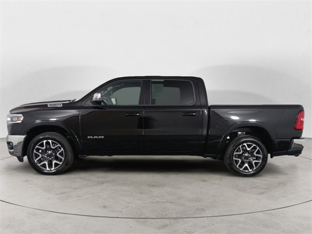 Diamond Black Crystal Pearlcoat 2025 Ram 1500 Laramie 4WD 8-Speed Automatic 3.0L I6 CARFAX One-Owner. Clean CARFAX. 10 Speakers, 3 Rear Seat Head Restraints, 33 Gallon Fuel Tank, 4 Way Front Headrests, 4-Wheel Disc Brakes, 4G LTE Wi-Fi Hot Spot, ABS brakes, Air Conditioning, Alloy wheels, AM/FM radio: SiriusXM with 360L, Apple CarPlay, Apple CarPlay/Android Auto, Audio memory, Auto High-beam Headlights, Auto Power-Folding Mirrors, Auto-dimming door mirrors, Auto-Dimming Exterior Driver Mirror, Auto-dimming Rear-View mirror, Automatic temperature control, Brake assist, Bumpers: chrome, Chrome Exterior Mirrors, Compass, Connected Travel & Traffic Services, Connectivity - US/Canada, Convex Wide-Angle Exterior Mirror Insert, Delay-off headlights, Dome Dual LED Reading Lamp, Driver door bin, Driver Seat Memory, Driver vanity mirror, Dual front impact airbags, Dual front side impact airbags, Dual-Pane Panoramic Sunroof, Electronic Stability Control, Exterior Mirrors Courtesy Lamps, Exterior Mirrors w/Heating Element, Exterior Mirrors w/Memory, Exterior Mirrors w/Supplemental Signals, Front anti-roll bar, Front Center Armrest w/Storage, Front dual zone A/C, Front fog lights, Front License Plate Bracket, Front reading lights, Front Seat Back Map Pockets, Front wheel independent suspension, Fully automatic headlights, Garage door transmitter, Google Android Auto, GPS Antenna Input, GPS Navigation, HD Radio, Heated door mirrors, Heated Front Seats, Heated front seats, Heated rear seats, Heated Steering Wheel, Heated steering wheel, Illuminated entry, Integrated Voice Command w/Bluetooth, Laramie Level 1 Equipment Group, Leather steering wheel, Leather Trim 40/20/40 Bench Seat, LED Dome/Reading Lamp, Low tire pressure warning, Manufacturer's Statement of Origin, Memory seat, Navigation System, Occupant sensing airbag, Outside temperature display, Overhead airbag, Overhead console, Panic alarm, ParkView Rear Back-Up Camera, Passenger door bin, Passenger vanity mirror, Power 2-Way Driver Lumbar Adjust, Power 2-Way Passenger Lumbar Adjust, Power Adjust 8-Way Front Passenger Seat, Power door mirrors, Power driver seat, Power passenger seat, Power steering, Power windows, Quick Order Package 21H Laramie, Radio data system, Radio: Uconnect 5 Nav w/12.0" Display, Rain Sensitive Windshield Wipers, RAM Grille Badge - Chrome, Rear anti-roll bar, Rear reading lights, Rear seat center armrest, Rear step bumper, Remote keyless entry, Remote Tailgate Release, Security system, SiriusXM w/360L, Speed control, Split folding rear seat, Steering wheel mounted audio controls, Tachometer, Telescoping steering wheel, Tilt steering wheel, Traction control, Trailer Brake Control, Trip computer, Turn signal indicator mirrors, USB Host Flip, Variably intermittent wipers, Ventilated Front Seats, Ventilated front seats, Voltmeter, Wheels: 20" x 9" Premium Paint/Polish. Priced below KBB Fair Purchase Price!