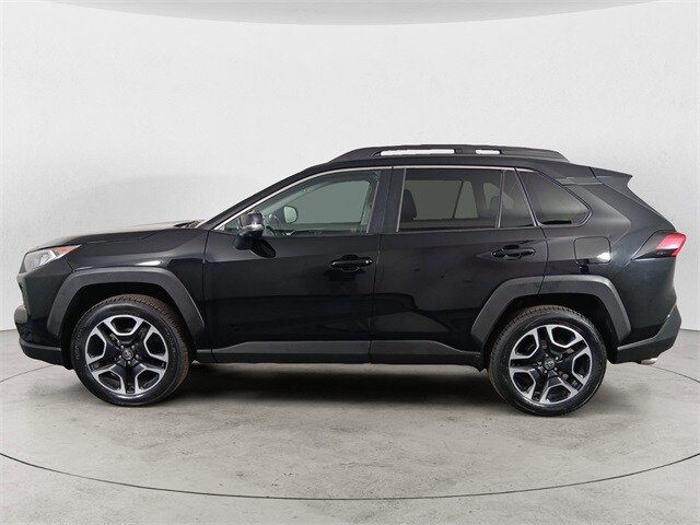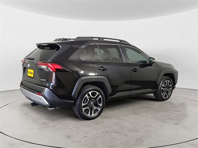 Midnight Black 2020 Toyota RAV4 Adventure AWD 8-Speed Automatic 2.5L 4-Cylinder DOHC Dual VVT-i Clean CARFAX. AWD, Black Artificial Leather, 19" Split 5-Spoke Alloy Wheels, 4-Wheel Disc Brakes, 6 Speakers, ABS brakes, Air Conditioning, Alloy wheels, AM/FM radio: SiriusXM, Apple CarPlay/Android Auto, Auto High-beam Headlights, Automatic temperature control, Axle Ratio: 3.177, Brake assist, Bumpers: body-color, Delay-off headlights, Driver door bin, Driver vanity mirror, Dual front impact airbags, Dual front side impact airbags, Electronic Stability Control, Emergency communication system: Entune Safety Connect, Exterior Parking Camera Rear, Four wheel independent suspension, Front anti-roll bar, Front Bucket Seats, Front Center Armrest, Front Door Smart Key System w/Push Button Start, Front dual zone A/C, Front fog lights, Front reading lights, Fully automatic headlights, Heated door mirrors, Illuminated entry, Knee airbag, Leather Shift Knob, Low tire pressure warning, Occupant sensing airbag, Outside temperature display, Overhead airbag, Overhead console, Panic alarm, Passenger door bin, Passenger vanity mirror, Power door mirrors, Power driver seat, Power steering, Power windows, Radio data system, Radio: Audio Plus, Rear anti-roll bar, Rear seat center armrest, Rear window defroster, Rear window wiper, Remote keyless entry, Roof rack: rails only, Security system, SofTex Seat Trim, Speed control, Speed-sensing steering, Split folding rear seat, Spoiler, Steering wheel mounted audio controls, Tachometer, Telescoping steering wheel, Tilt & Slide Moon Roof, Tilt steering wheel, Traction control, Trip computer, Turn signal indicator mirrors, Variably intermittent wipers, AWD, Black Artificial Leather. Priced below KBB Fair Purchase Price!