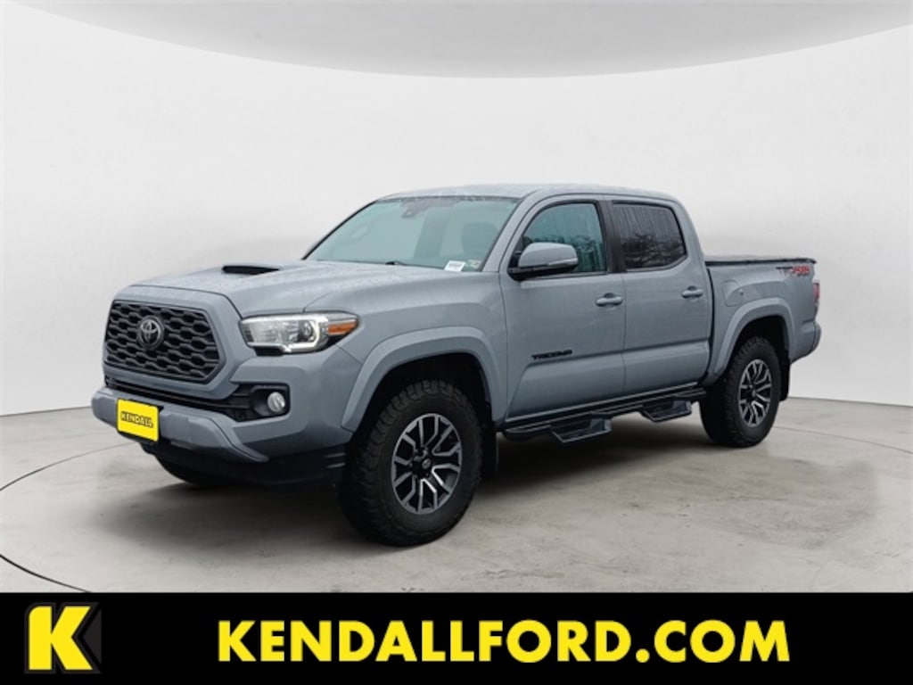 Cement 2021 Toyota Tacoma TRD Sport V6 4WD 6-Speed Automatic 3.5L V6 PDI DOHC 24V LEV3-ULEV70 278hp Clean CARFAX. 4WD, 120V/400W Deck Mounted AC Power, 6 Speakers, ABS brakes, Air Conditioning, All Weather Floor Liner & Door Sill Protector (TMS), Alloy wheels, AM/FM radio: SiriusXM, Anti-whiplash front head restraints, Apple CarPlay/Android Auto, Auto High-beam Headlights, Auto-dimming Rear-View mirror, Automatic temperature control, Axle Ratio: 3.91, Black Tailgate Insert (TMS), Blackout Emblem Overlays (TMS), Brake assist, Bumpers: body-color, Color-Keyed Overfenders, Driver door bin, Dual front impact airbags, Dual front side impact airbags, Electronic Stability Control, Emergency communication system: Safety Connect with 1-year trial, Engine Immobilizer, Exterior Parking Camera Rear, Fabric Seat Trim (FD), Front anti-roll bar, Front Bucket Seats, Front Center Armrest, Front dual zone A/C, Front fog lights, Front reading lights, Front Seats, Front wheel independent suspension, Hard Tri-Fold Tonneau Cover, Heated door mirrors, Illuminated entry, Knee airbag, Leather Shift Knob, LED Daytime Running Lights & Fog Lights, Low tire pressure warning, Mudguards (TMS), Occupant sensing airbag, Outside temperature display, Overhead airbag, Overhead console, Panic alarm, Passenger door bin, Power Color Turn Mirror, Power door mirrors, Power driver seat, Power Sliding Rear Window w/Privacy Glass, Power steering, Power windows, Preferred Owners Portfolio (TMS), Radio: AM/FM Radio, Rear step bumper, Remote keyless entry, Security system, Smart Key w/Push Button Start, Speed control, Speed-sensing steering, Split folding rear seat, Steering wheel mounted audio controls, Tachometer, Telescoping steering wheel, Tilt steering wheel, Traction control, TRD Sport Package, Trip computer, Turn signal indicator mirrors, Variably intermittent wipers, Wheels: 17" x 7.5J Machined Alloy, 4WD.
