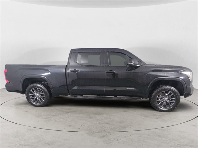 Midnight Black 2022 Toyota Tundra Platinum 4WD 10-Speed Automatic 3.4L V6 4WD, Black Leather, 10-Way Pwr Adj Heated and Ventilated Front Seats, 12 Speakers, 3.31 Axle Ratio, 4-Wheel Disc Brakes, ABS brakes, Air Conditioning, All Weather Floor Liners (TMS), Alloy wheels, AM/FM radio: SiriusXM, Apple CarPlay/Android Auto, Auto High-beam Headlights, Auto-dimming door mirrors, Auto-dimming Rear-View mirror, Automatic temperature control, Black Tailgate Insert (TMS), Brake assist, Bumpers: body-color, Delay-off headlights, Driver door bin, Driver vanity mirror, Dual front impact airbags, Dual front side impact airbags, Electronic Stability Control, Emergency communication system: Safety Connect with 1-year trial, Front anti-roll bar, Front Bucket Seats, Front Center Armrest, Front dual zone A/C, Front fog lights, Front reading lights, Front wheel independent suspension, Fully automatic headlights, Garage door transmitter: HomeLink, Heated door mirrors, Heated front seats, Heated rear seats, Heated steering wheel, Illuminated entry, Knee airbag, Leather Seat Trim, Leather Shift Knob, Low tire pressure warning, Memory seat, Navigation System, Occupant sensing airbag, Outside temperature display, Overhead airbag, Overhead console, Panic alarm, Passenger door bin, Passenger vanity mirror, Power door mirrors, Power driver seat, Power moonroof, Power passenger seat, Power steering, Power windows, Radio data system, Radio: Audio Multimedia System, Rain sensing wipers, Rear reading lights, Rear seat center armrest, Rear step bumper, Rear window defroster, Remote keyless entry, Safety Connect, Security system, Speed control, Speed-sensing steering, Split folding rear seat, Steering wheel memory, Steering wheel mounted audio controls, Tachometer, Telescoping steering wheel, Tilt steering wheel, Traction control, Trip computer, Turn signal indicator mirrors, Variably intermittent wipers, Ventilated front seats, Ventilated rear seats, Voltmeter, Wheels: 20" Dark Painted Alloy, 4WD, Black Leather.
