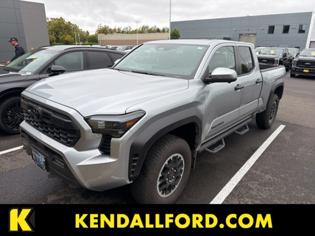Celestial Silver Metallic 2024 Toyota Tacoma 4WD 8-Speed Automatic 2.4L 4-Cylinder 4WD, 3.583 Axle Ratio, 4-Wheel Disc Brakes, ABS brakes, Air Conditioning, Alloy wheels, AM/FM radio: SiriusXM, Anti-whiplash front head restraints, Apple CarPlay/Android Auto, Auto High-beam Headlights, Auto-dimming Rear-View mirror, Black Badge Overlay (TMS), Brake assist, Bumpers: body-color, Door Panel Scuff Protector (TMS), Driver door bin, Dual front impact airbags, Dual front side impact airbags, Electronic Stability Control, Emergency communication system: Safety Connect (1-year trial), Exterior Parking Camera Rear, Four wheel independent suspension, Front & Rear Mud Guards, Front anti-roll bar, Front Bucket Seats, Front Center Armrest, Front fog lights, Front reading lights, Fully automatic headlights, Heated door mirrors, Illuminated entry, IP Side Accessory - Storage Case (TMS), JBL Premium Audio, Knee airbag, Low tire pressure warning, Occupant sensing airbag, Outside temperature display, Overhead airbag, Overhead console, Panic alarm, Passenger door bin, Power door mirrors, Power steering, Power windows, Rear step bumper, Rear window defroster, Remote keyless entry, Speed control, Speed-sensing steering, Split folding rear seat, Spray-On Bed Liner (TMS), Steering wheel mounted audio controls, Tachometer, Telescoping steering wheel, Tilt steering wheel, Traction control, Trip computer, Variably intermittent wipers, 4WD.