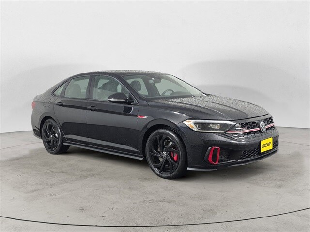 Black 2024 Volkswagen Jetta GLI 2.0T Autobahn FWD 6-Speed Manual 2.0L TSI DOHC CARFAX One-Owner. 4-Wheel Disc Brakes, 9 Speakers, ABS brakes, Active Blind Spot Monitor, Air Conditioning, Alloy wheels, AM/FM radio: SiriusXM with 360L, Auto High-beam Headlights, Auto-dimming Rear-View mirror, Automatic temperature control, Brake assist, Bumpers: body-color, Delay-off headlights, Driver door bin, Driver vanity mirror, Dual front impact airbags, Dual front side impact airbags, Electronic Stability Control, Emergency communication system: VW Car-Net Safe & Secure 5-year, Exterior Parking Camera Rear, Four wheel independent suspension, Front anti-roll bar, Front Bucket Seats, Front Center Armrest, Front dual zone A/C, Front reading lights, Fully automatic headlights, Heated & Actively Ventilated Front Seats, Heated door mirrors, Heated front seats, Heated steering wheel, Illuminated entry, Leather Shift Knob, Leather steering wheel, Low tire pressure warning, Memory seat, Occupant sensing airbag, Outside temperature display, Overhead airbag, Overhead console, Panic alarm, Passenger door bin, Passenger vanity mirror, Perforated Vienna Leather Seating Surfaces, Power door mirrors, Power driver seat, Power moonroof, Power steering, Power windows, Radio data system, Radio: MIB3 Composition Media w/8" Touchscreen, Rain sensing wipers, Rear anti-roll bar, Rear reading lights, Rear seat center armrest, Rear window defroster, Remote keyless entry, Security system, Speed control, Speed-sensing steering, Split folding rear seat, Sport steering wheel, Steering wheel mounted audio controls, Tachometer, Telescoping steering wheel, Tilt steering wheel, Traction control, Trip computer, Turn signal indicator mirrors, Variably intermittent wipers, Ventilated front seats, Wheels: 18" Two-Tone Machined Alloy.